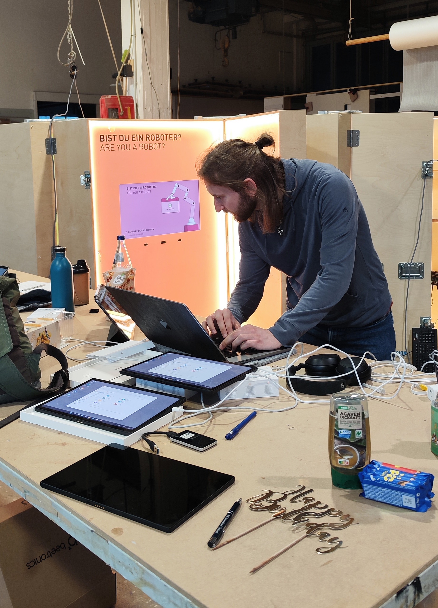 Für die Entwicklung (neun von elf Exponaten und der Online Plattform), Hardware-Zusammenstellung, Einrichtung vor Ort und die Entwicklung einer adaptiven Audio-Description war ich hauptverantwortlich, meine Kollegen Vanessa, Stefan und Daniel für Gestaltung und Unterstützung in der Programmierung.