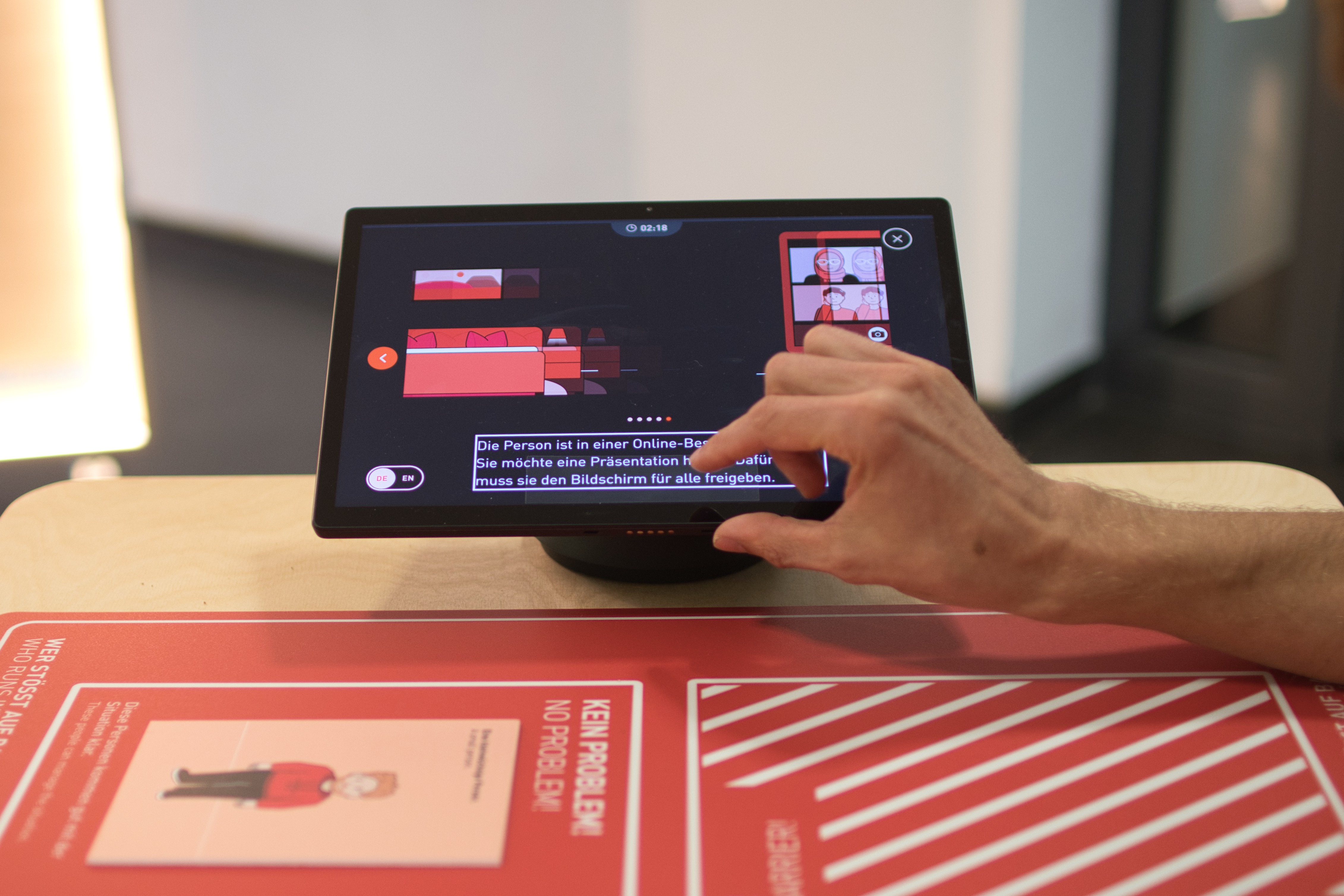 Die Ausstellung ist barrierefrei gestaltet, insbesondere für Menschen mit Seh- oder Hörbehinderung, sowie Menschen mit Rollstuhl. Ein eigens entwickeltes VoiceOver-System macht die interaktiven Stationen zugänglich. Um gewohnte Pattern beizubehalten, ist das System an die Funktionsweise von iOS/iPadOS angelehnt: